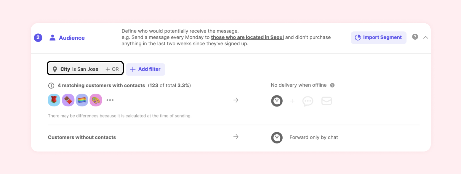 Set when and how to send a message to the target audience who met the above conditions.
