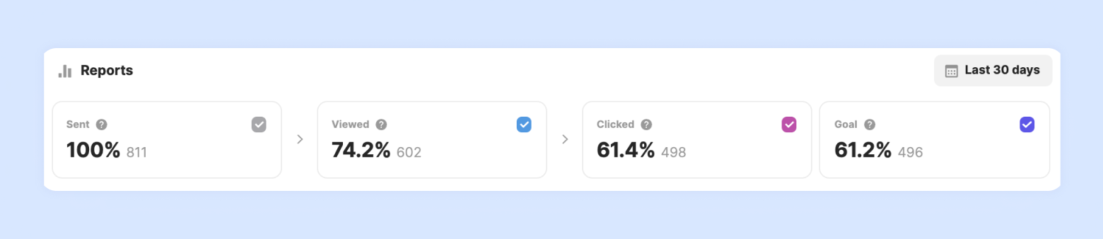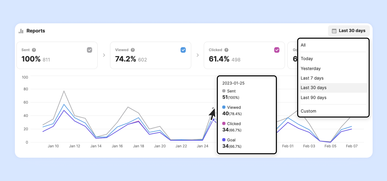 You can select and check each graph through the checkboxes next to the [sent], [Viewed],[Clicked], and [Goal].