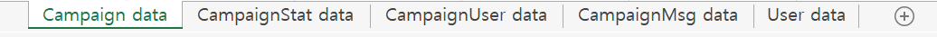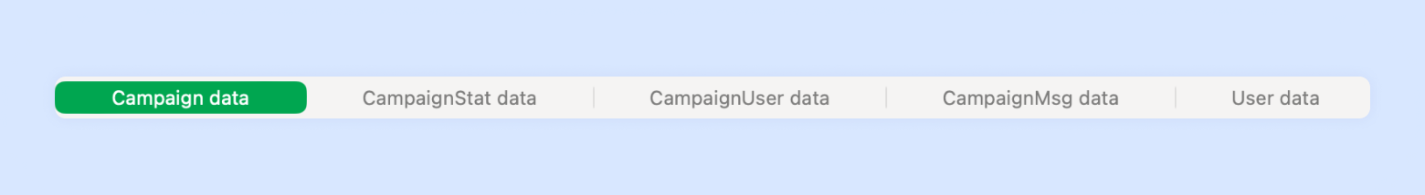 Campaign data | Campaign message ID and detailed information including the number of sent, viewed, clicked and goal achieved results |