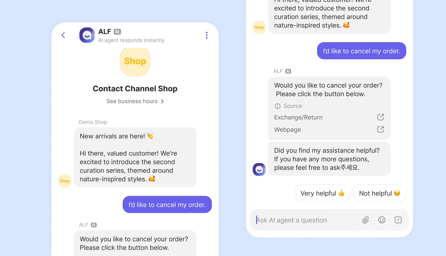 If a customer clicks the “Not helpful” button or explicitly requests an agent, you can choose whether to allow the handoff to a human agent.