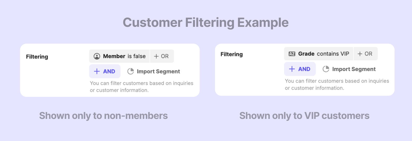 Customer tags (purchase history, cart items, etc.)