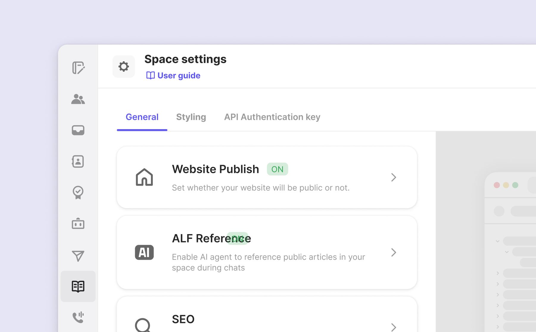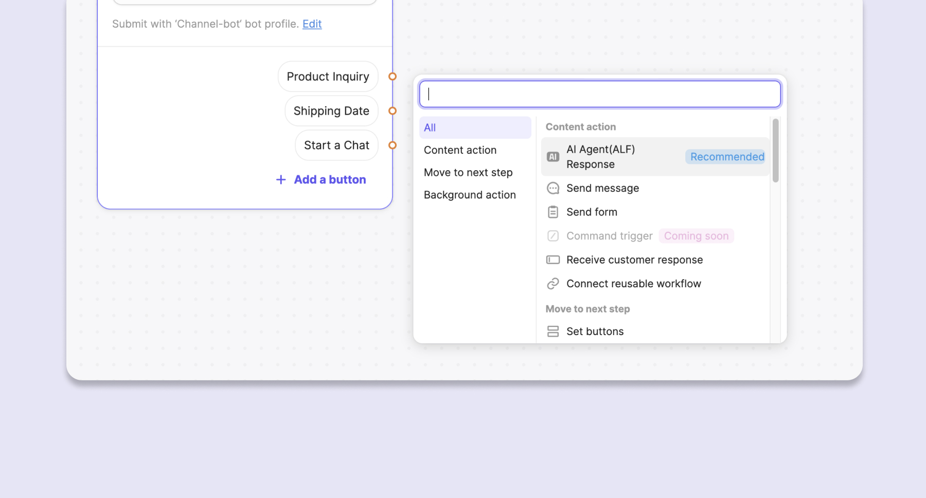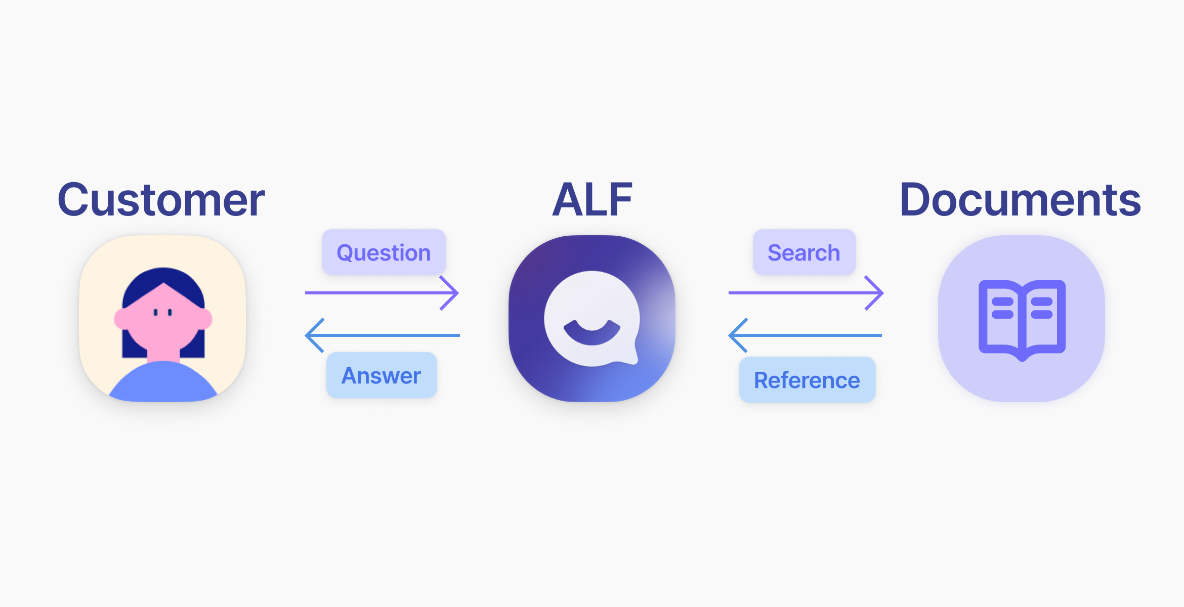 Currently, ALF can generate answers based on Channel Talk's document management feature, Documents. In the future, it will be able to generate answers based on various databases such as PDFs and user chats. (→ Learn more about Documents)