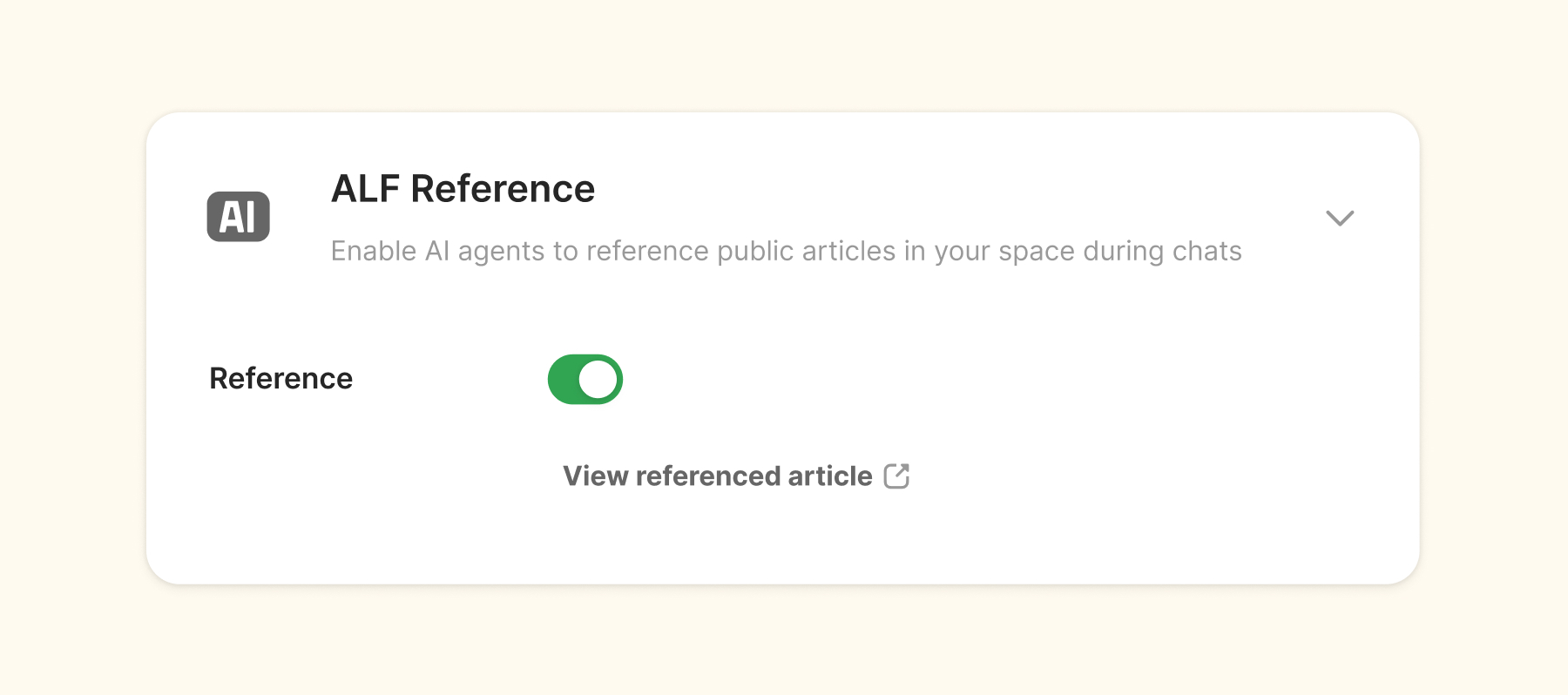 To allow ALF to reference an article for its answers, turn on 'Use ALF' at the top right of the article editing screen.