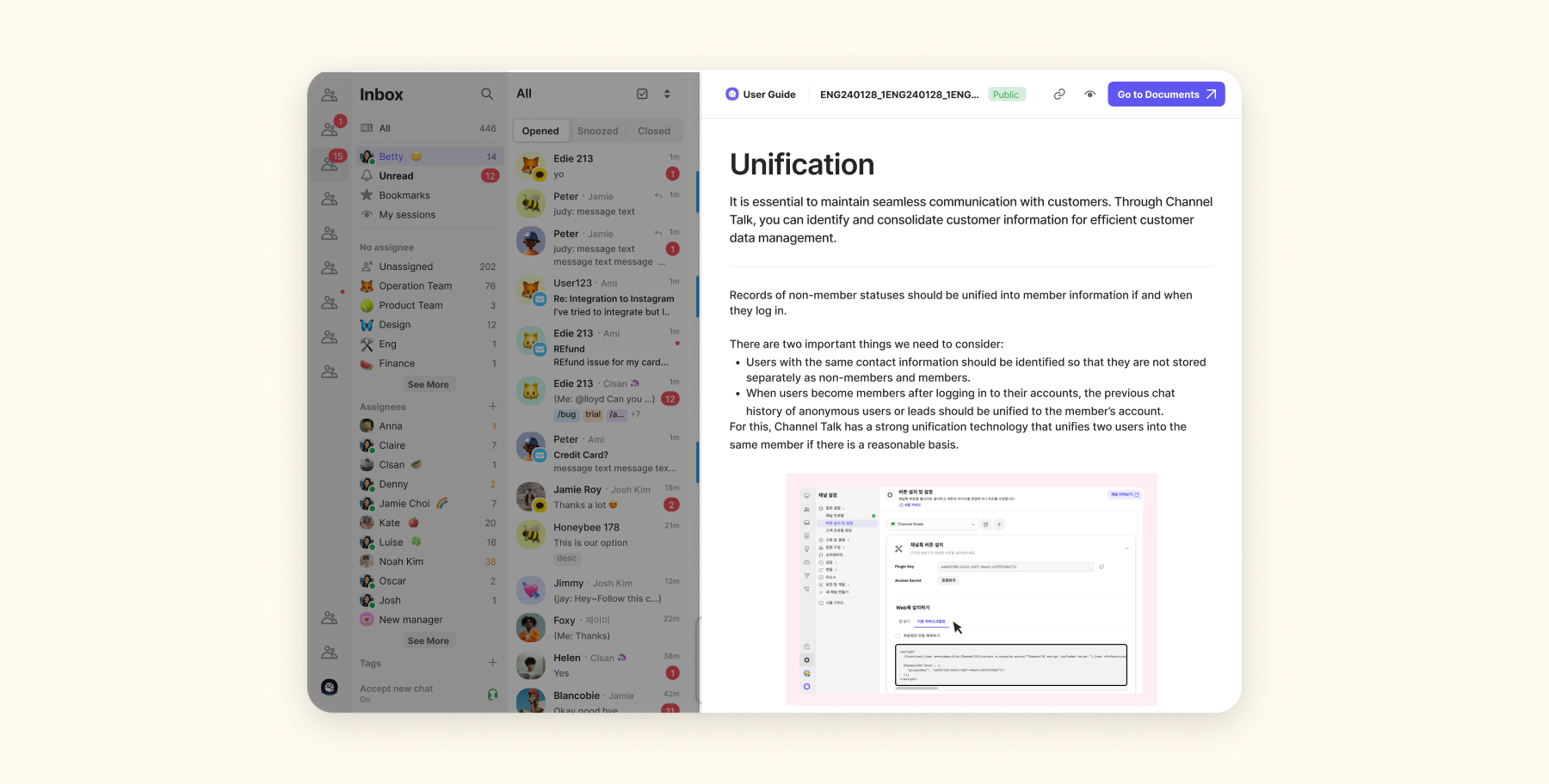 If they find that the article cited in the ALF answer needs to be updated, they can modify it in real time and update the information in the user chat screen without having to go to the document menu.