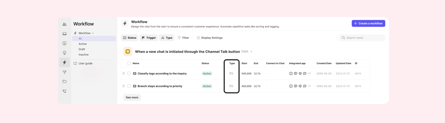 If a workflow triggered by "when a new chat starts from Channel Talk button" includes an action to open a chat, it can trigger another workflow set to trigger "when a chat is initiated."