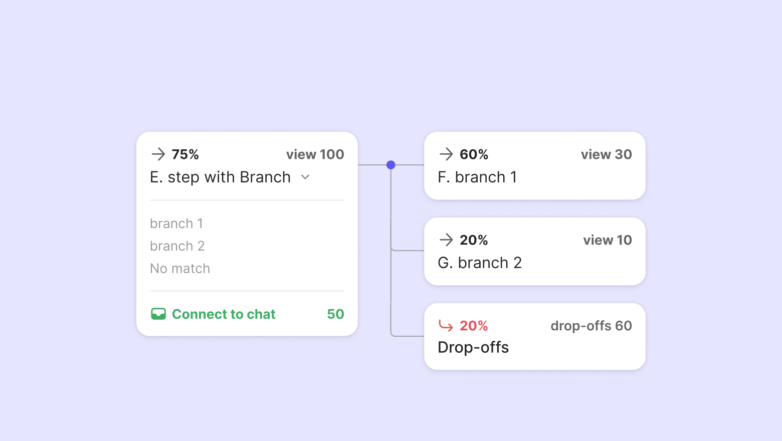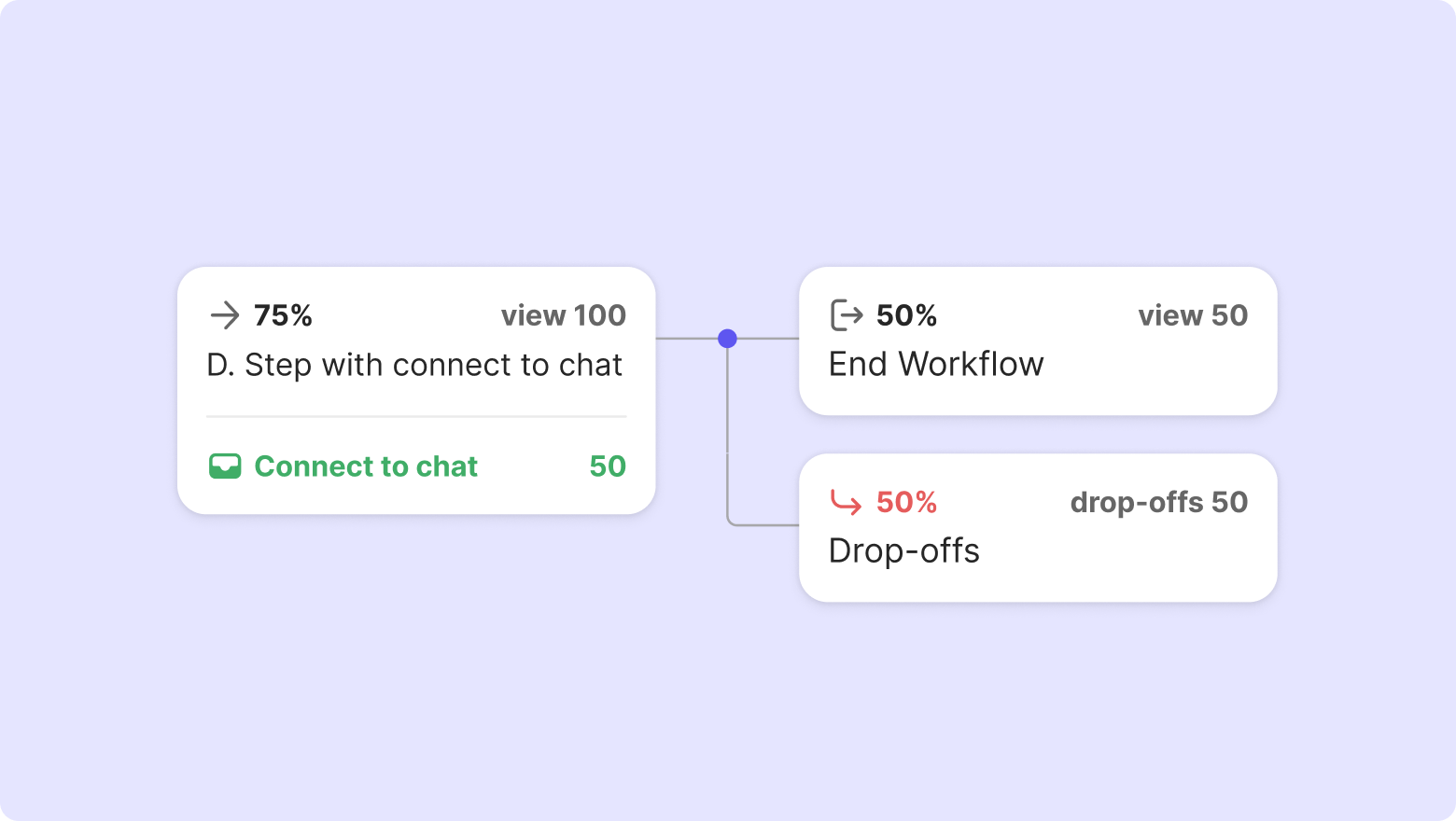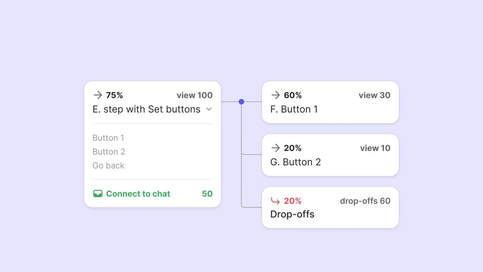 Drop-offs = The number of view in the step with 'Connect to chat' - (Sum of views in next steps + End Workflow)