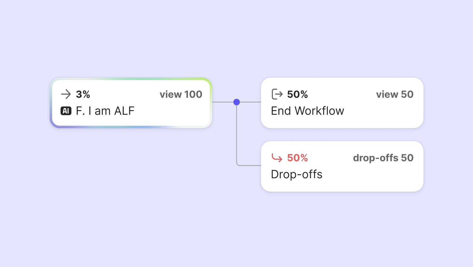 It has a distinct border color to differentiate it from other steps. ALF can only be used as the final action in a workflow, so the default display shows workflow completion, with drop-offs indicated depending on whether the customer exited before completion.