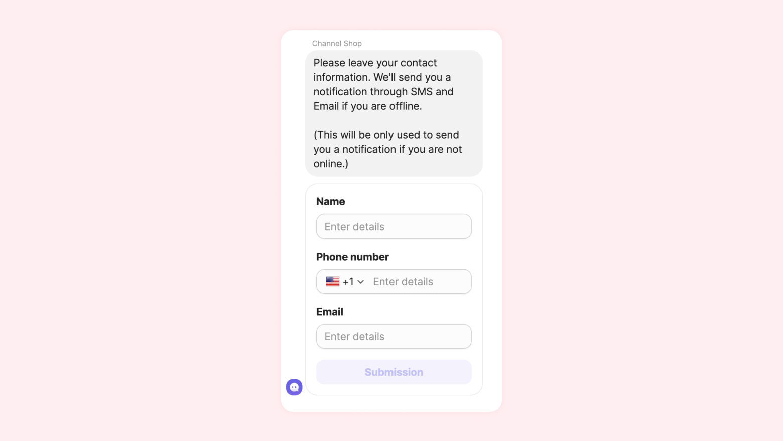 Channel Talk provides a chatbot function that helps you collect customer contact information easily. (→ Learn more about Follow-up Notifications)