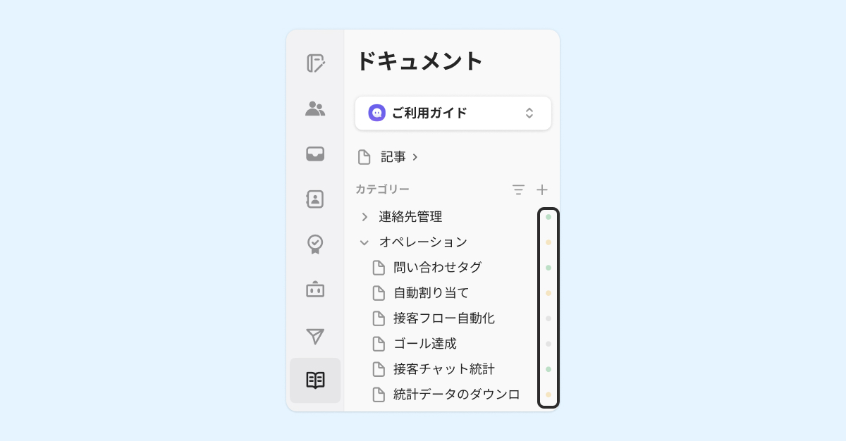 カテゴリータイトルの右側の点からステータスを確認することができます。