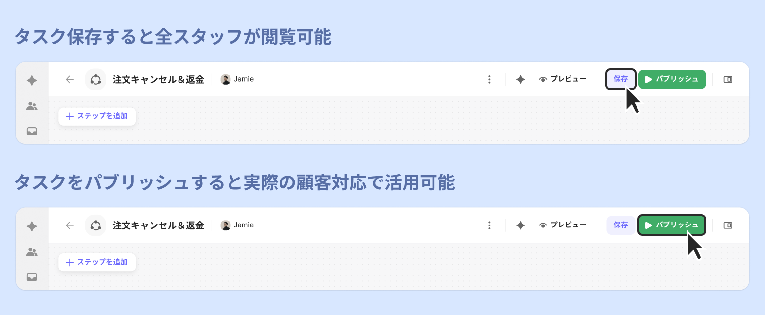 [パブリッシュ] すると、タスクが実際の問い合わせで活用されます。