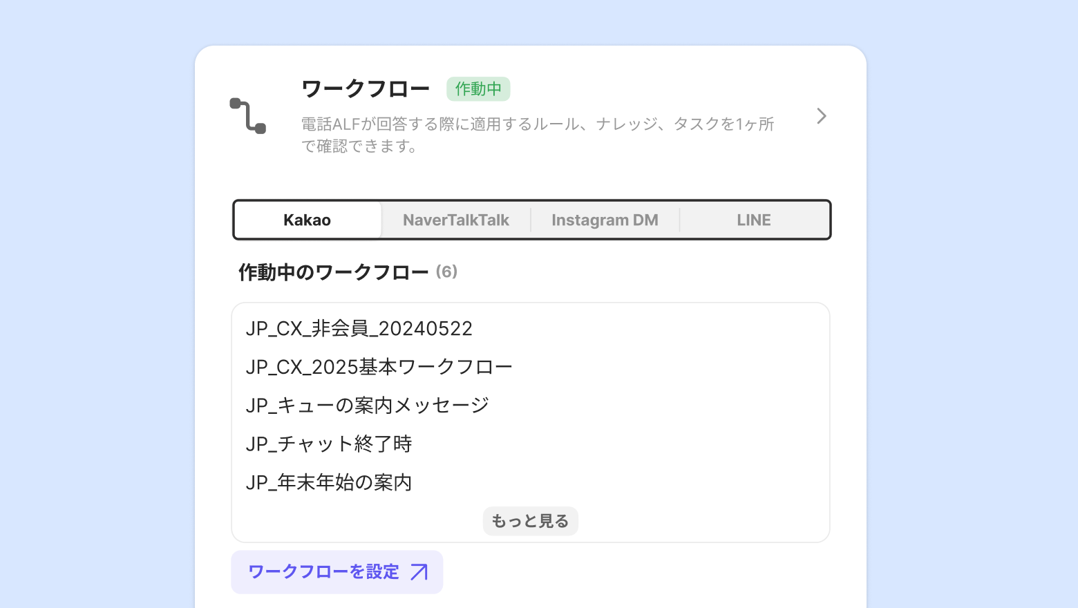 顧客ALFが接続されている作動中のワークフローを一目で確認/管理できます。