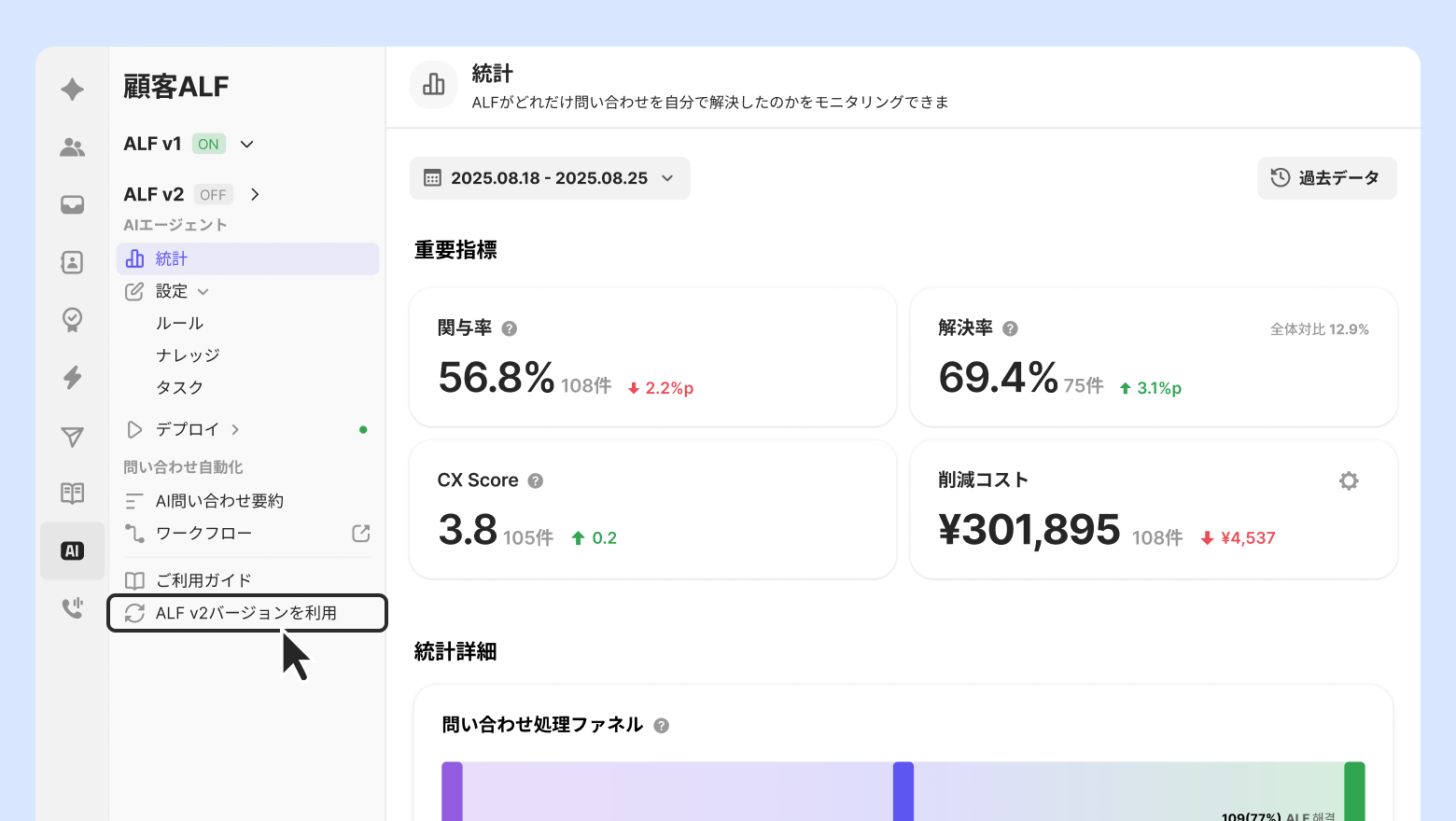 すでに応対中のALFのチャット問い合わせは切り替え前のバージョンで応対します。