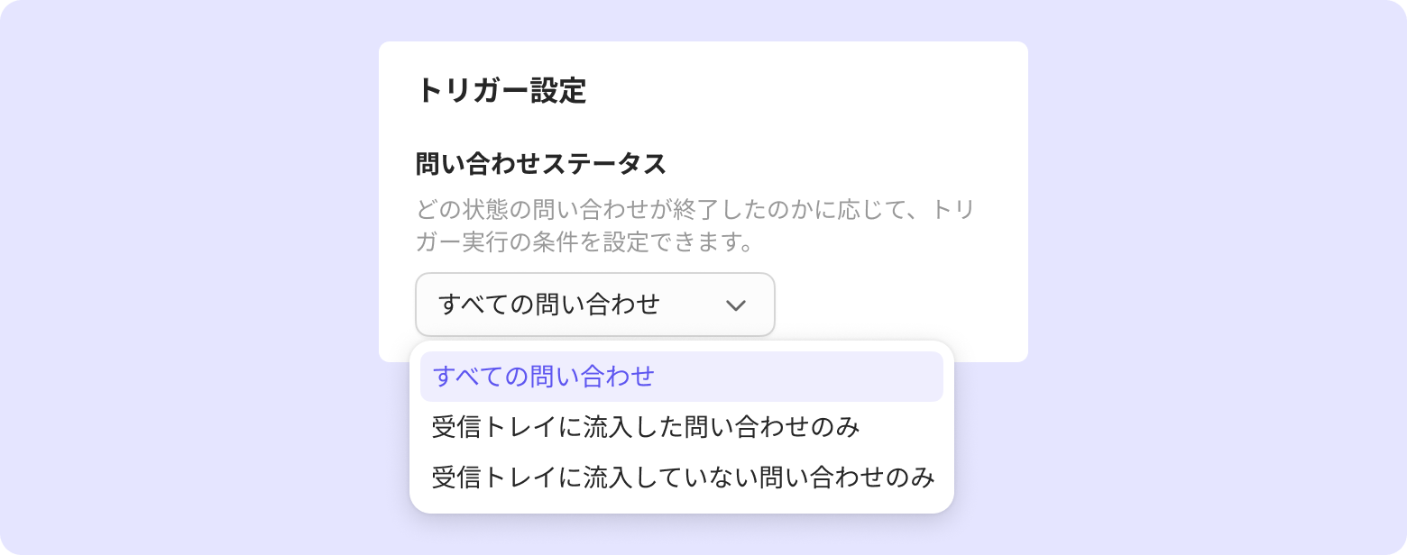 [トリガー設定] - [問い合わせステータス] で以下の2つの場合に応じてトリガーオプションを選択できます。