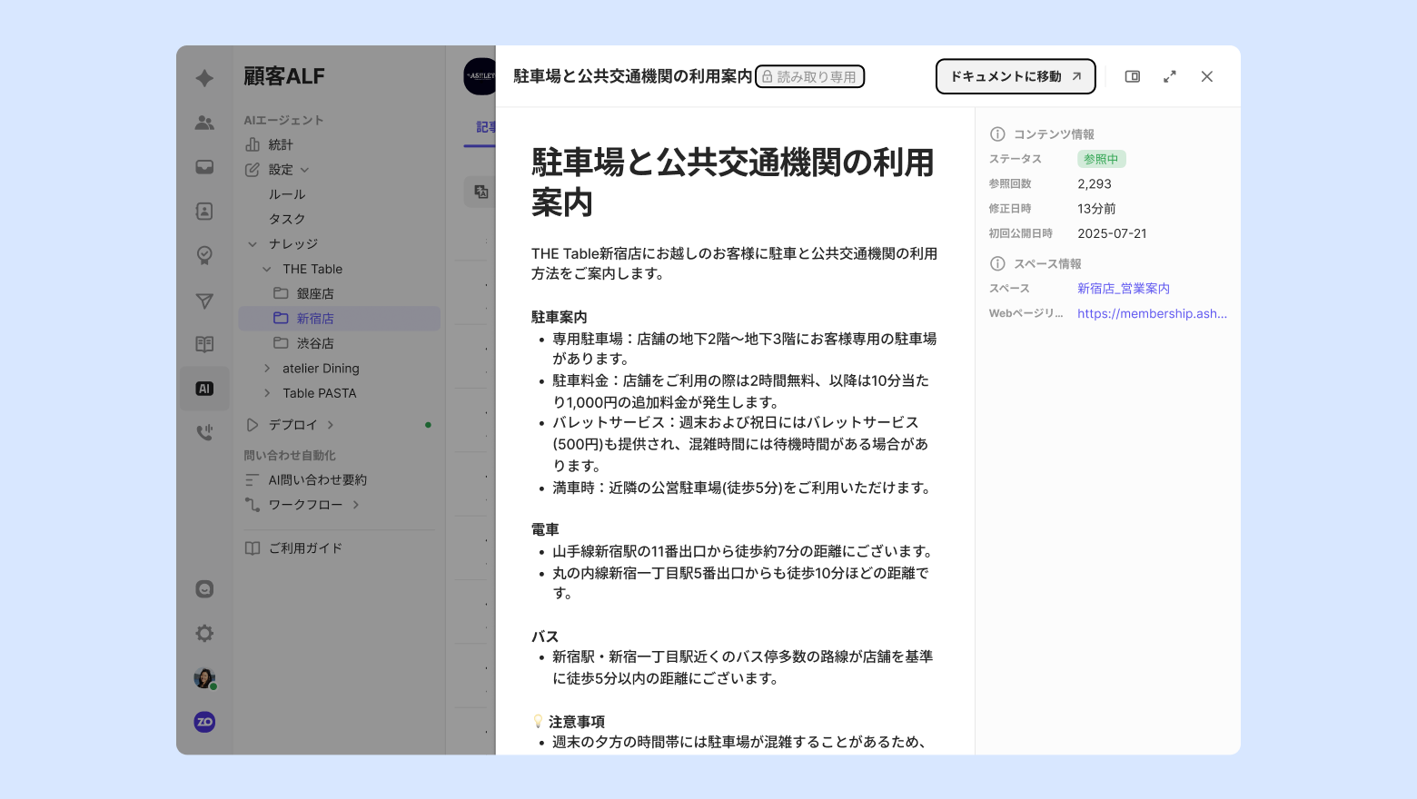 スペース内の記事とFAQは、公開中のものが知識センターに登録され、ALFもこの公開中の内容を参考にして回答を作成します。
