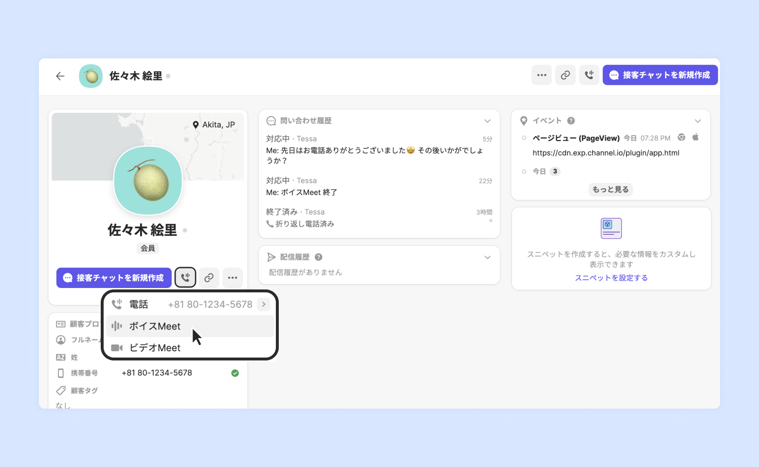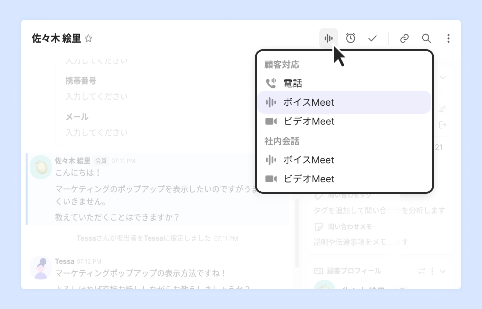 方法:[顧客のプロフィール] - [Meet] - [ボイスMeet]