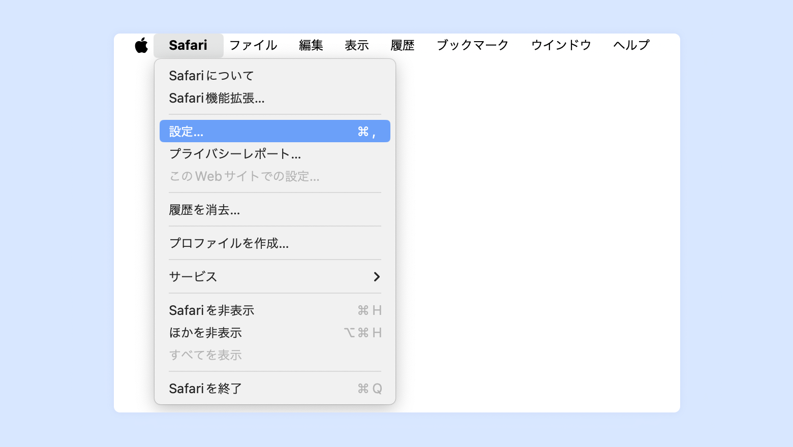 右上の [•••] ボタンを押し、[設定] をクリックします。