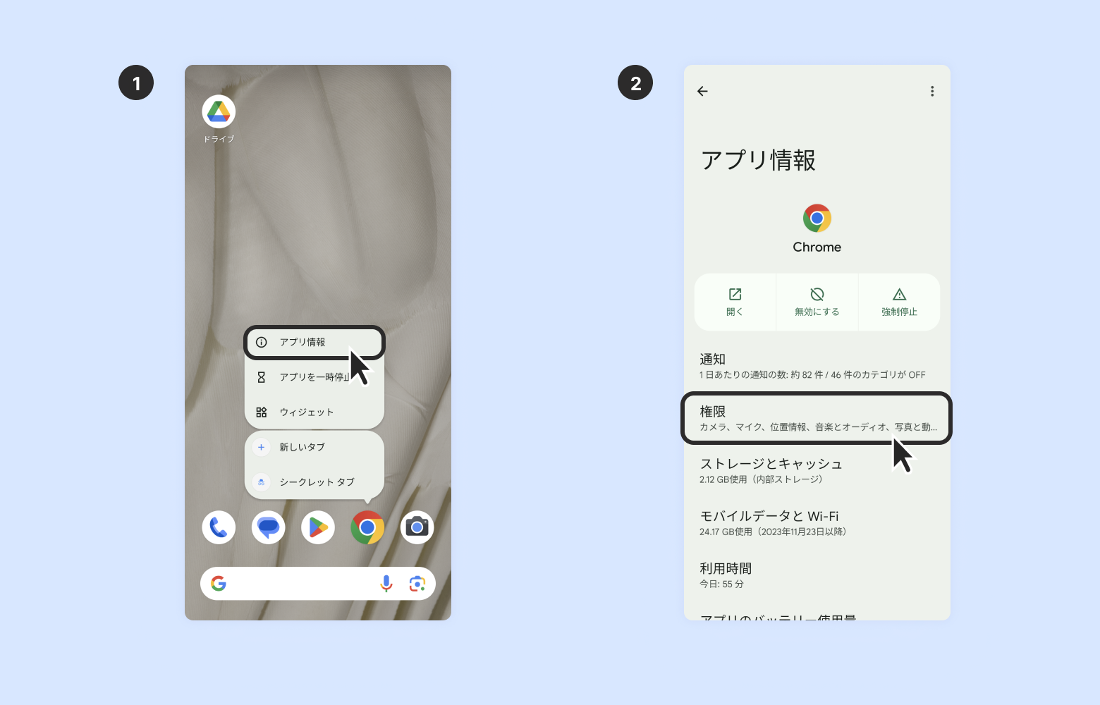 Chromeアプリを長押し [アプリ情報] をクリックします。