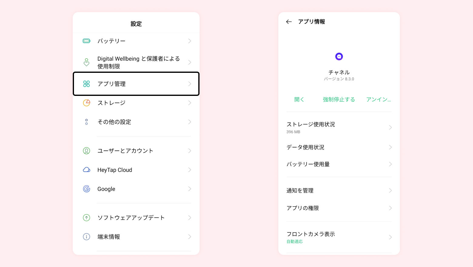 [設定] - [アプリケーション] メニューでチャネルトークを選択します。
