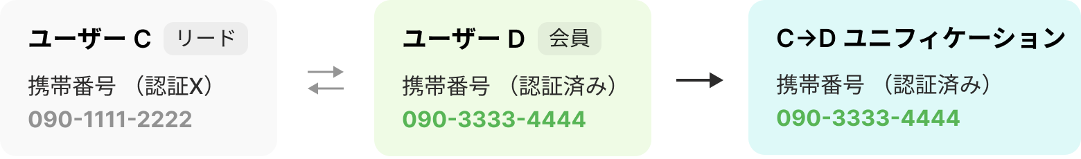 例3)認証済みの情報を持つリード+認証されていない情報を持つメンバーのユニフィケーション