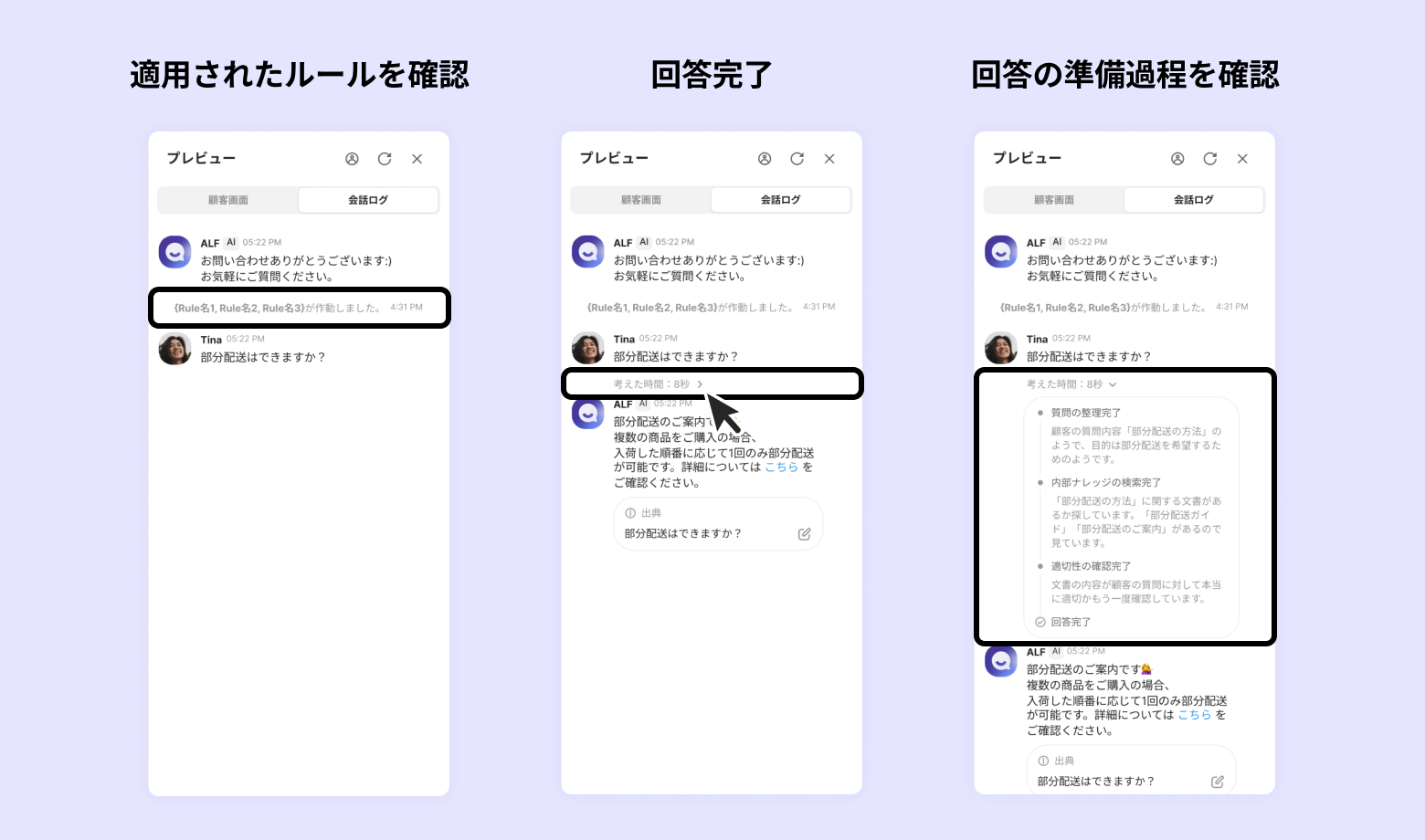 ALFがどのように考えて回答を作成したのかの詳細を確認できます。