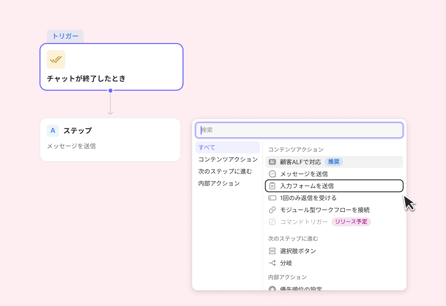 以下の設定をすると、チャットが終了する度に自動で接客チャットに満足度調査を送信できます。レシピをご用意しているため、簡単に活用できます。