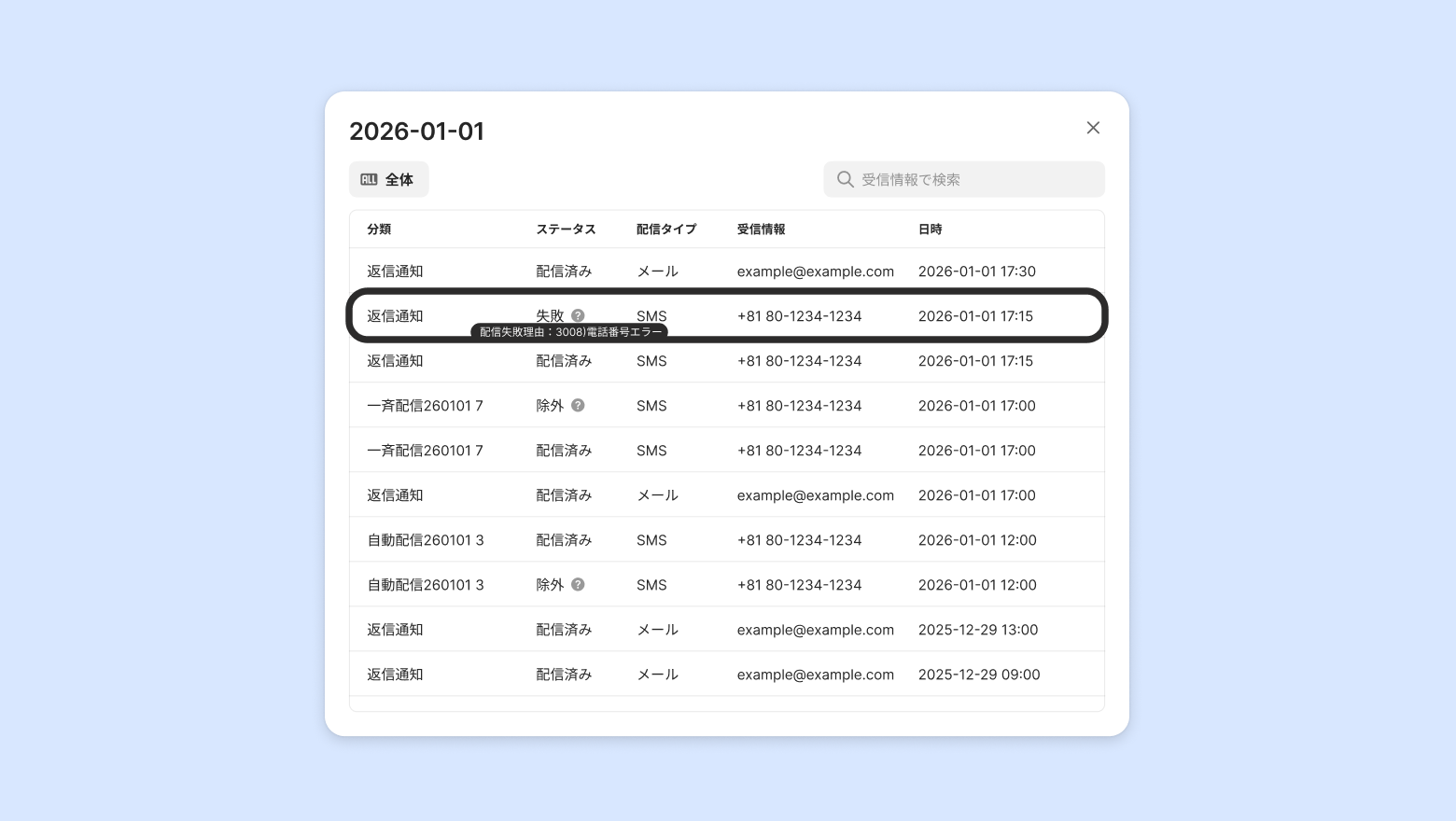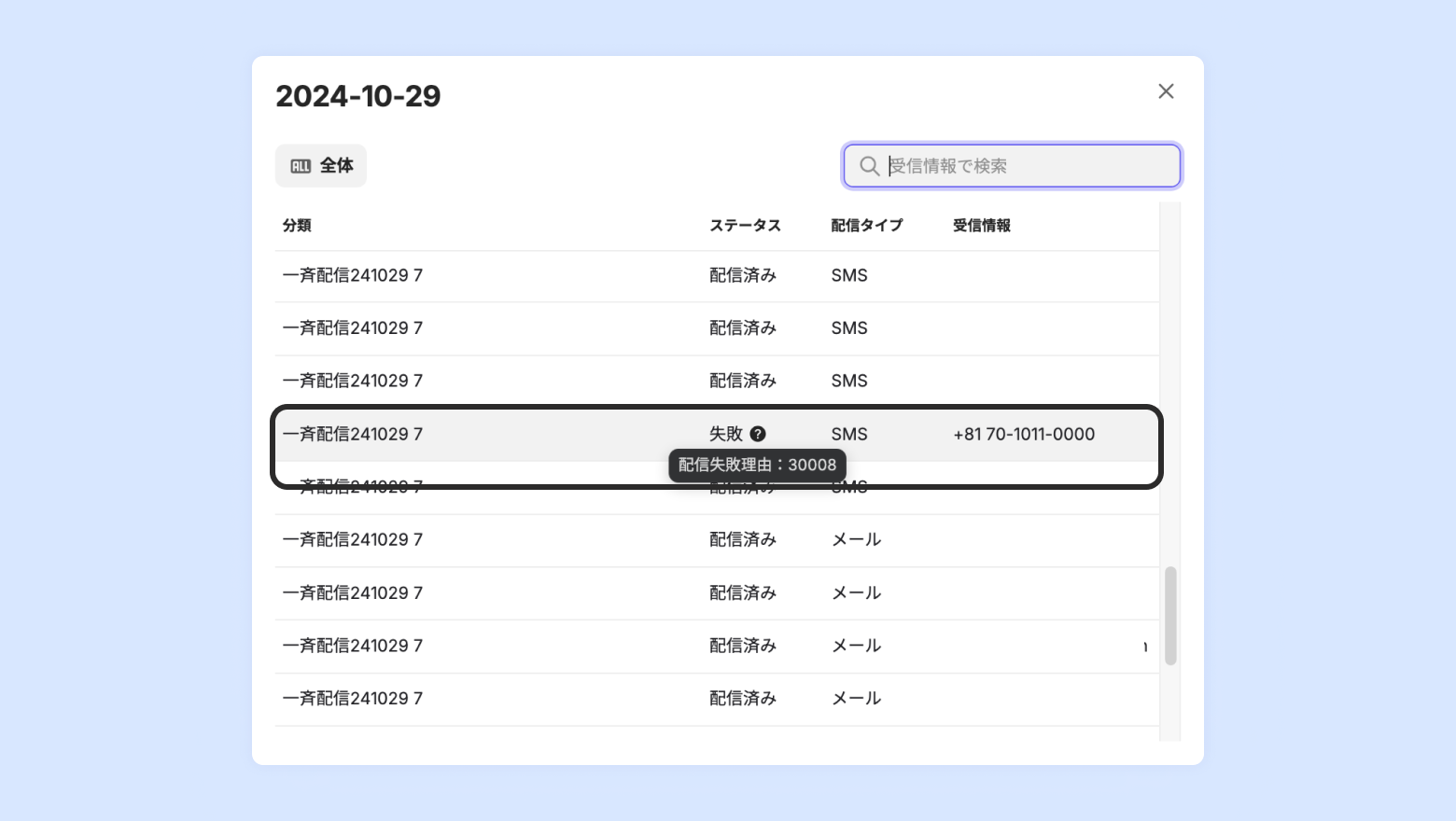 SMSやメールなどが正常に配信済みされたかを一件ごとに結果を確認できます。