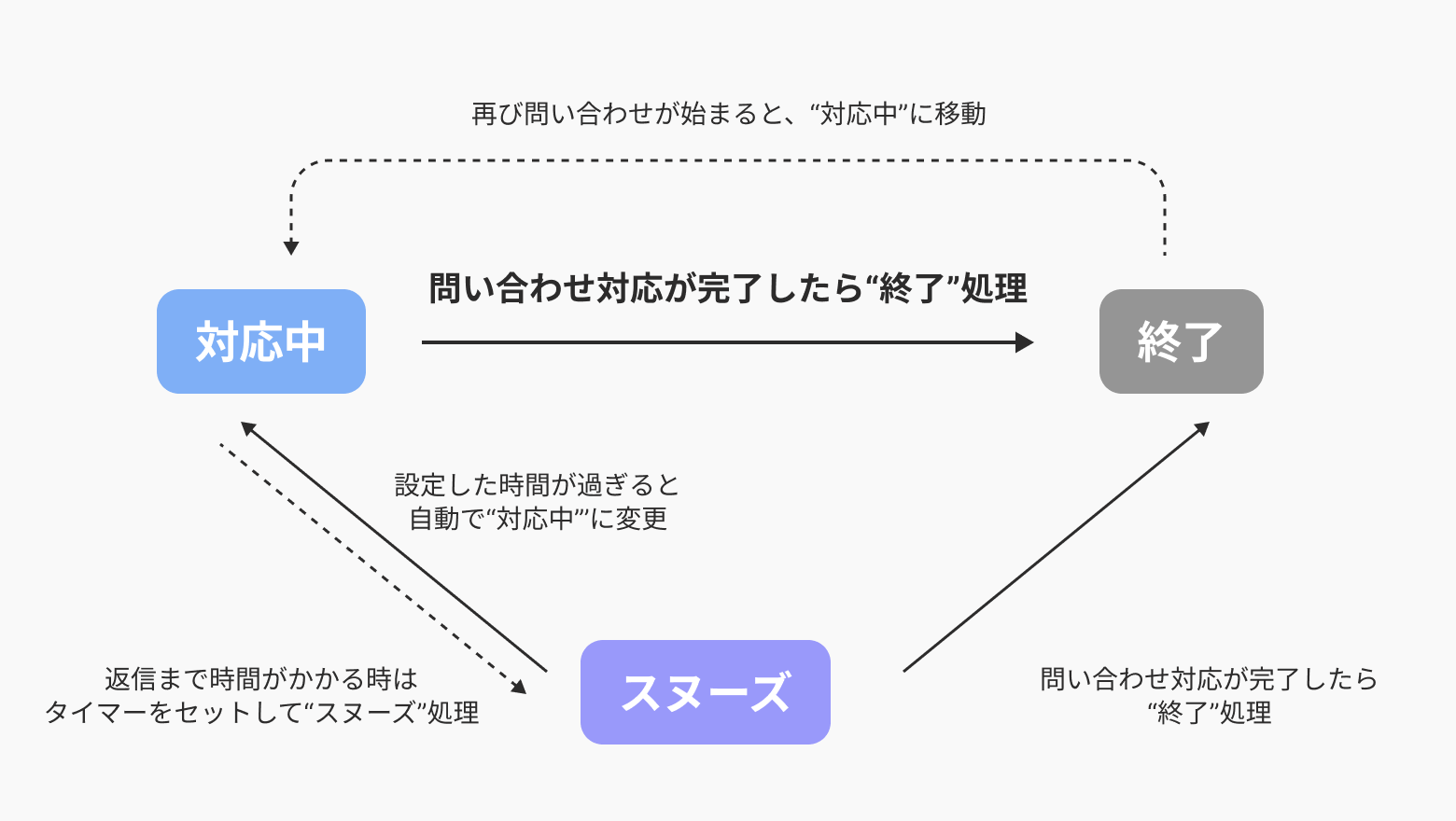 (チャットを効率的に対応するために、チャネルトークでは4つのステータスでチャットを管理します。)