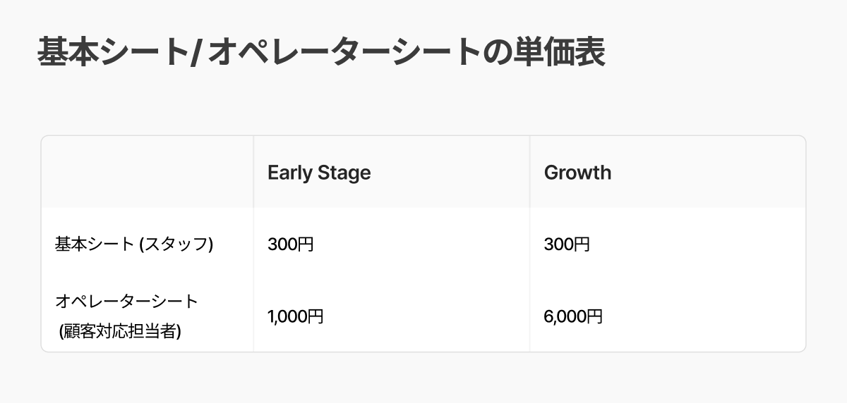 Early Stage利用条件:MU 3,000以下/基本シート 10以下/オペレーターシート 5以下