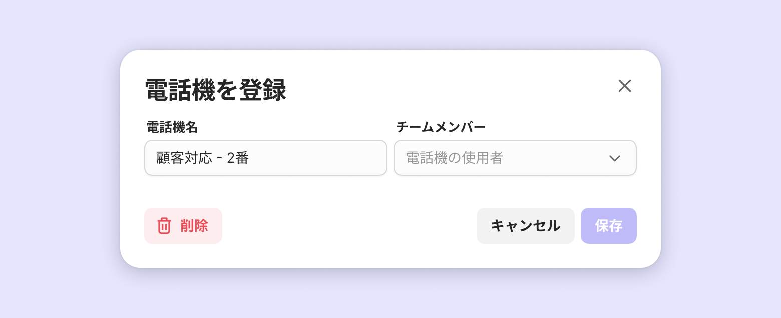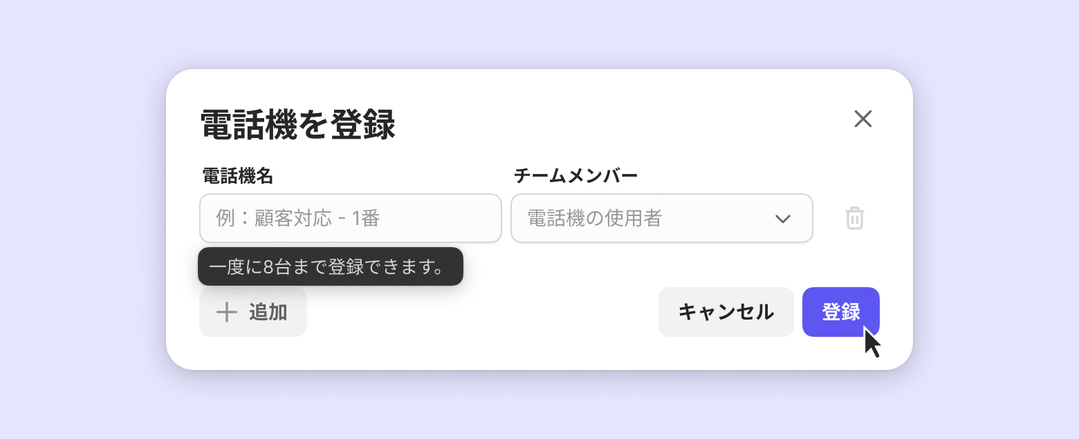 チームメンバー別の仮想電話機を登録します。連携する電話機の数だけ登録してください。