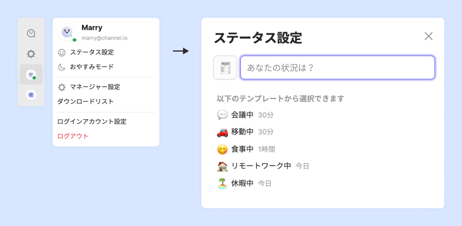 方法:[アカウント設定 ] - [ステータス設定] で設定可能です。