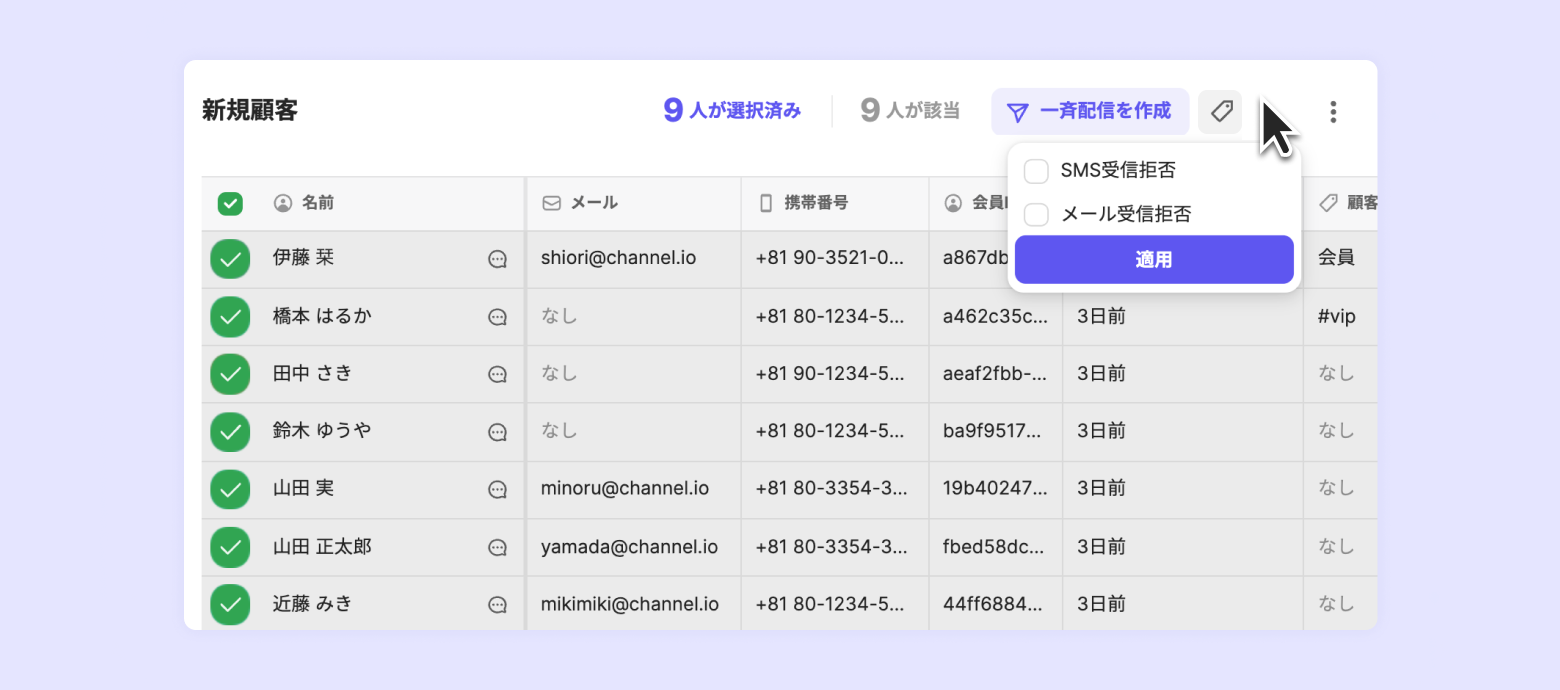 顧客タグ・マーケティング受信拒否設定は、バルクアクション で一括修正できます 。