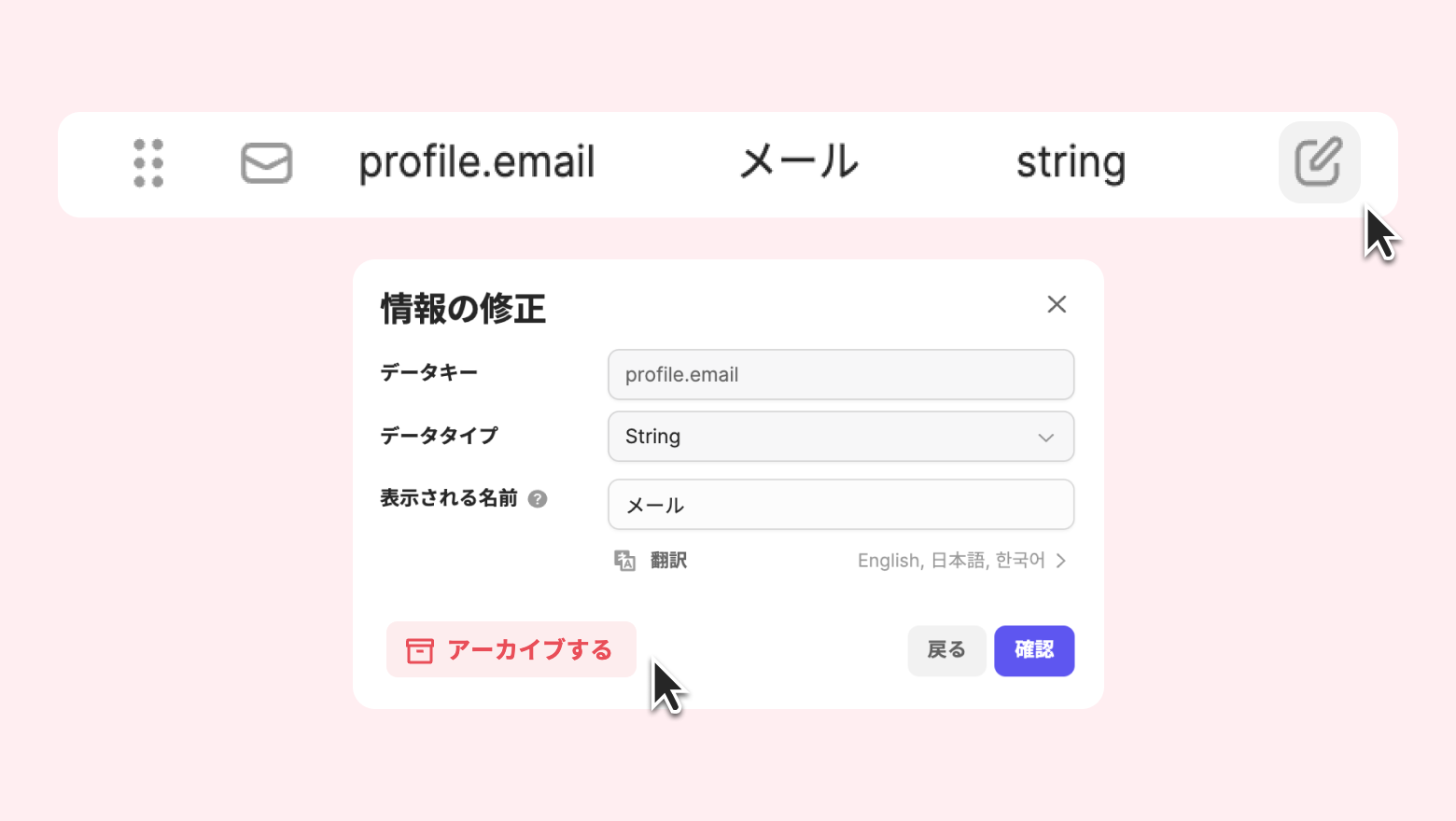 顧客プロフィール情報のアーカイブ:顧客プロフィール情報リストには無効な形で残っているが、データが収集されず、連絡先管理や顧客プロフィールから確認できない。