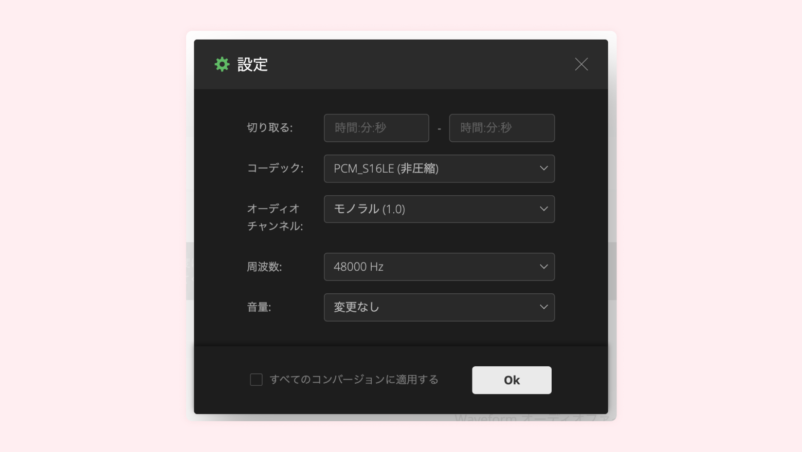 カスタマイズした音声ファイルの周波数とコーデックを適切な形に設定してください。以下の方法に従ってエンコードを進めてください。