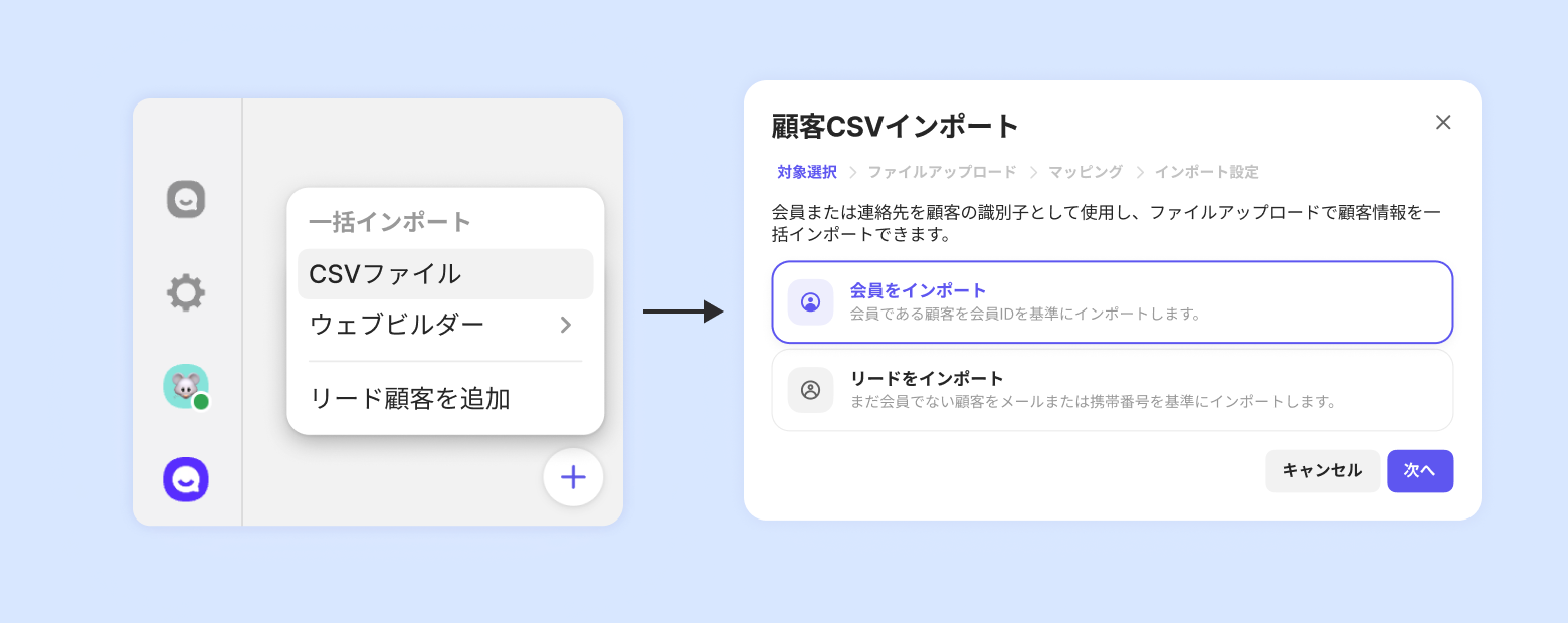 このとき、会員顧客の情報をインポートするのか、リード顧客の情報をインポートするのかを選択します。(→会員とリードの違いを見る)