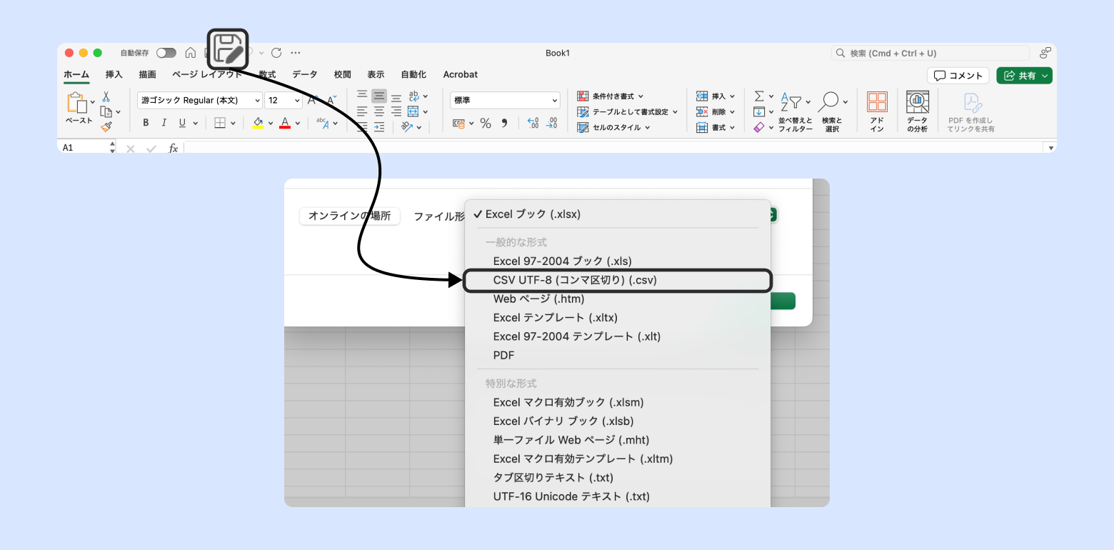 [CSV UTF-8 (コンマ区切り) (.csv)] を選択する