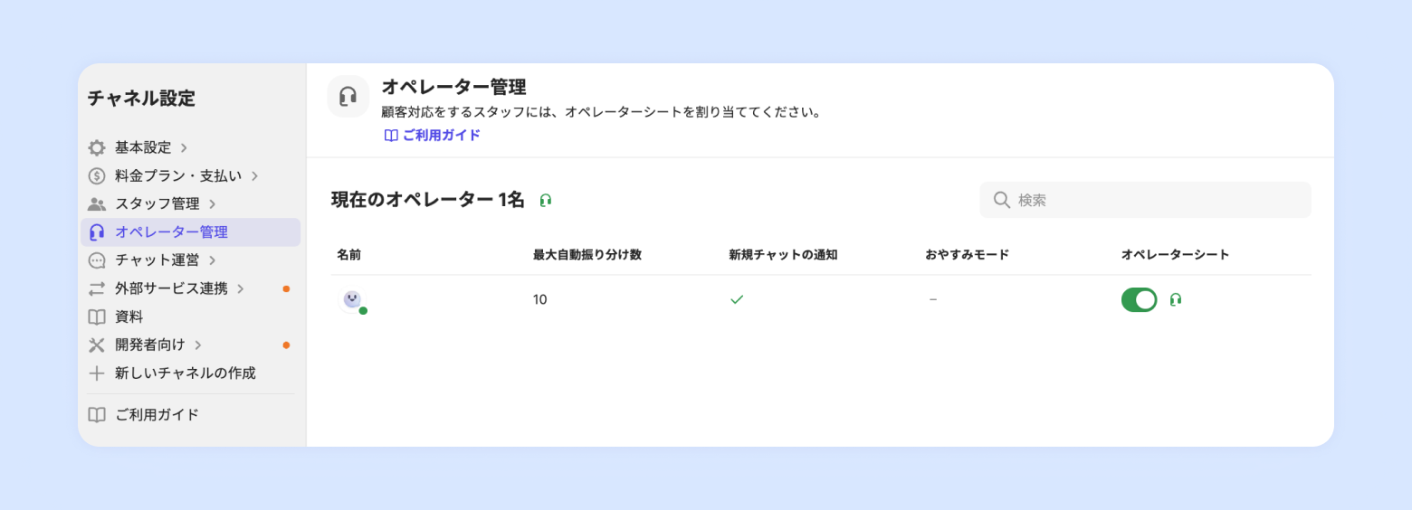 オペレーターシートを持つスタッフのみ、電話及びチャットの担当者になれます。