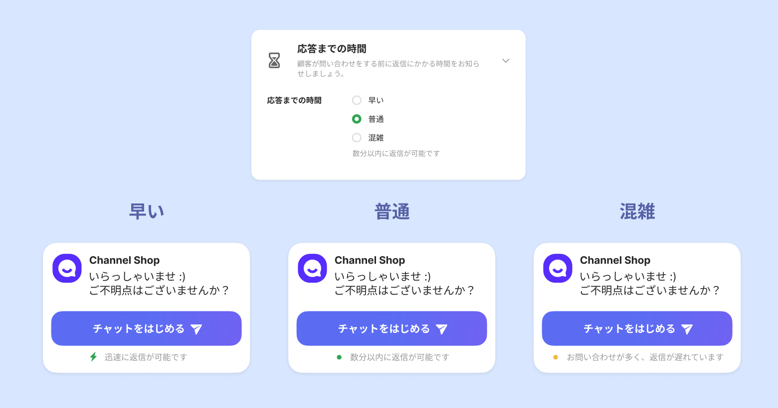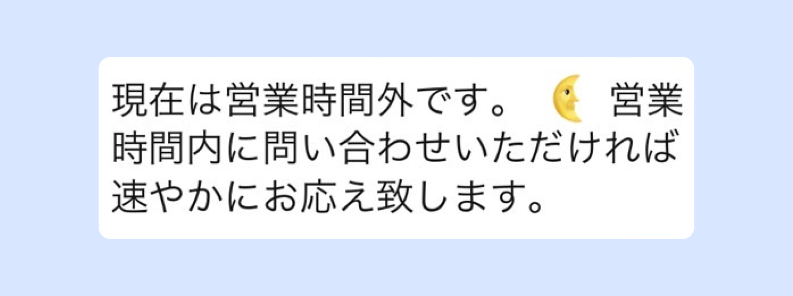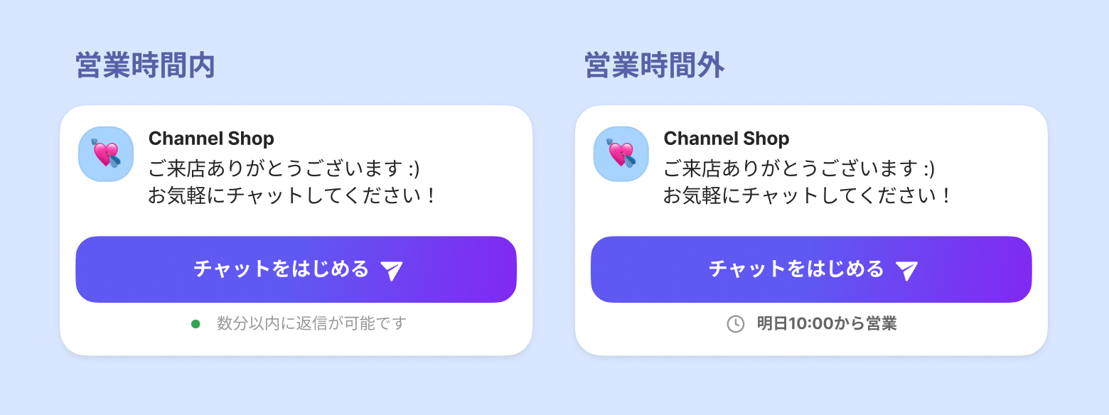 営業時間内は応答までの時間が、営業時間外には次の営業時間の開始時刻が表示されます。