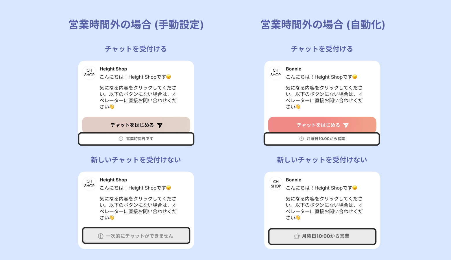 営業状態を設定し、顧客にチャット対応が可能な時間を知らせましょう。