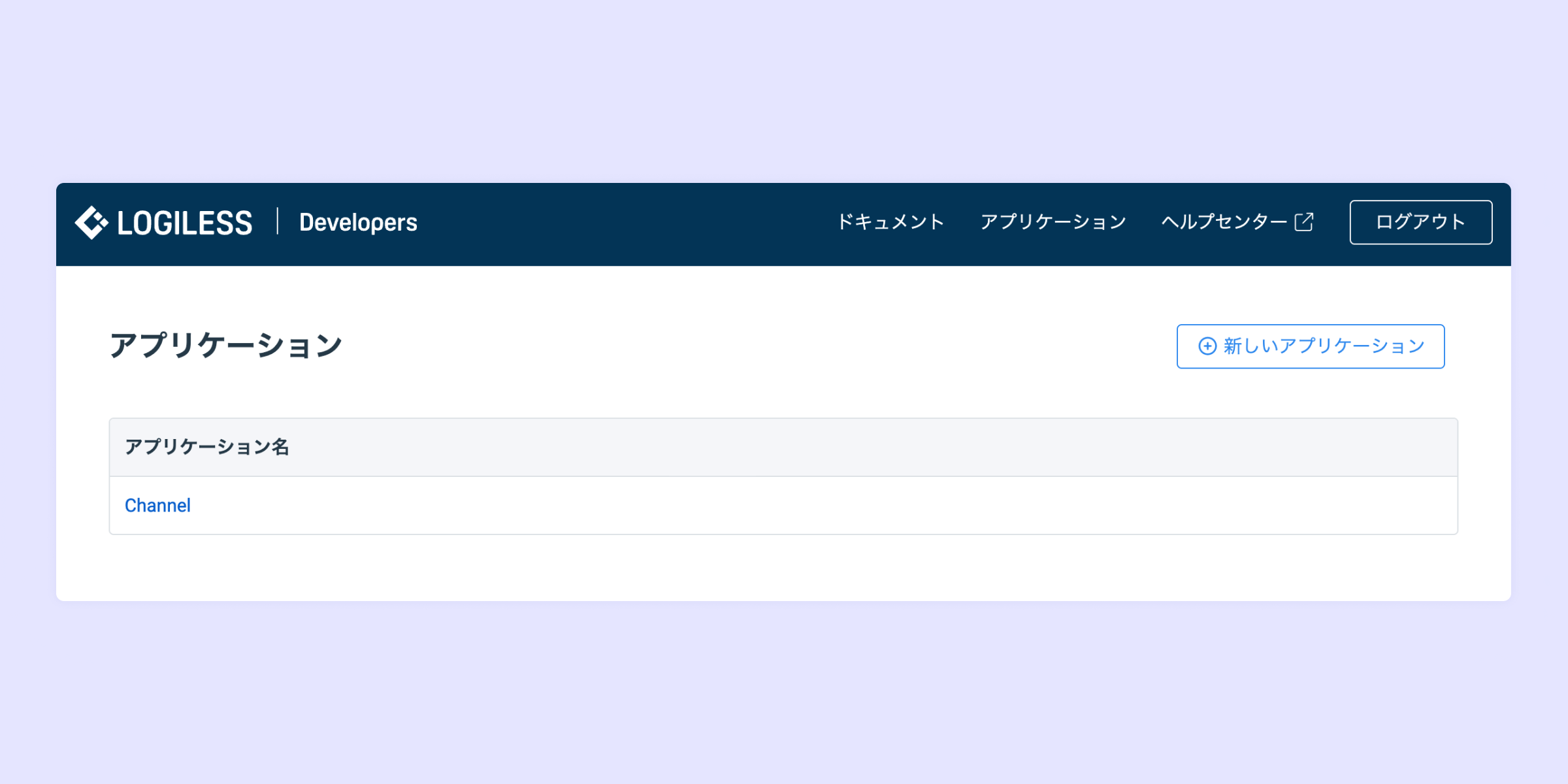 アプリケーションがない場合は [新しいアプリケーション] をクリックして登録してください。アプリケーションの登録にはLOGILESSの審査を受ける必要があります。
