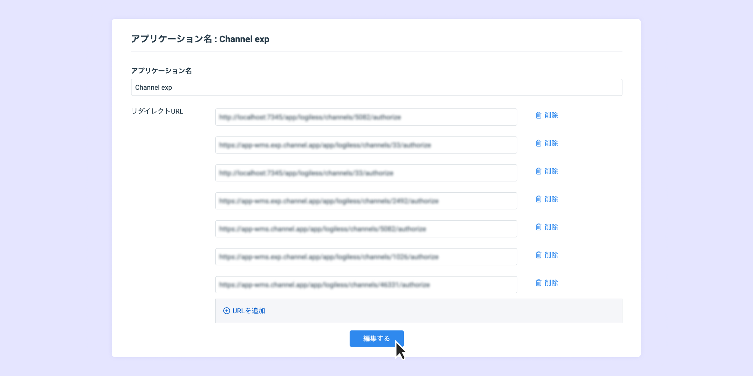 [URLを追加] をクリックし、最初にコピーしたRedirect URLを入力後に [編集する] を押します。