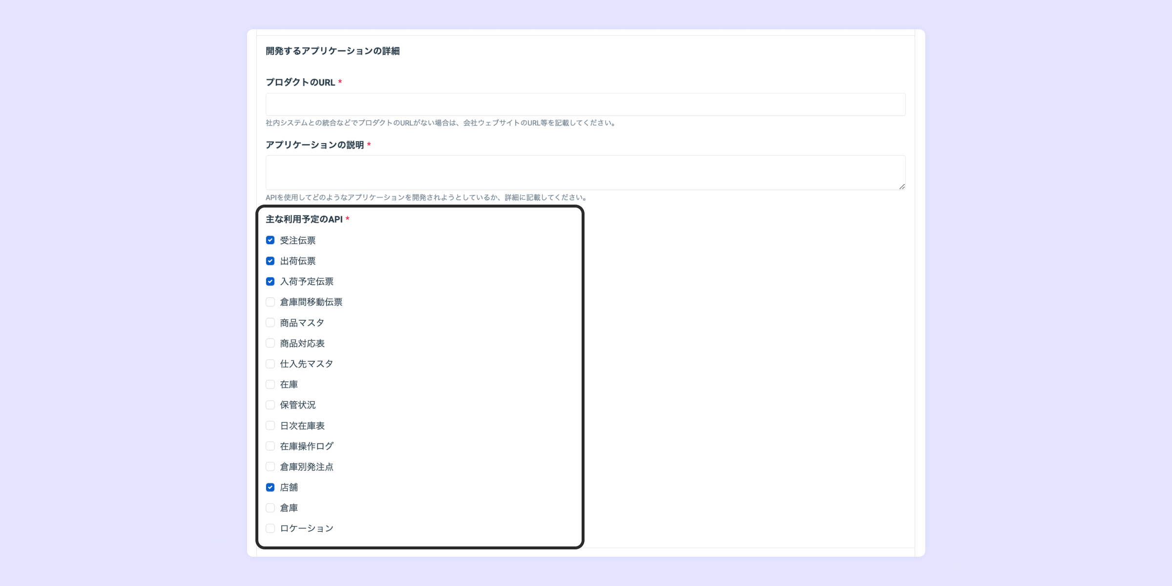[主な利用予定のAPI] にて以下4つの権限を保有している必要があります。