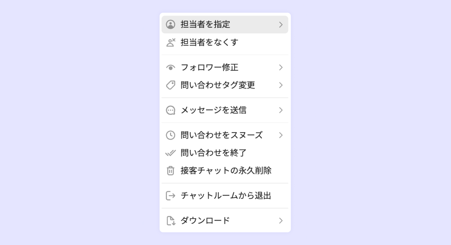• 接客チャットの永久削除:接客チャットを完全に削除します。