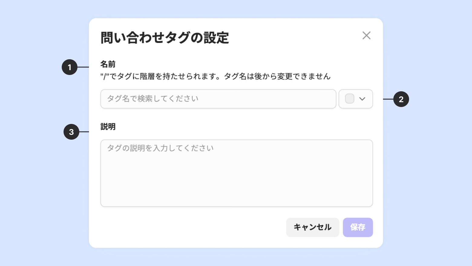 タグに説明文をつけて、どのような状況でこのタグを使用するのかを定義することができます。