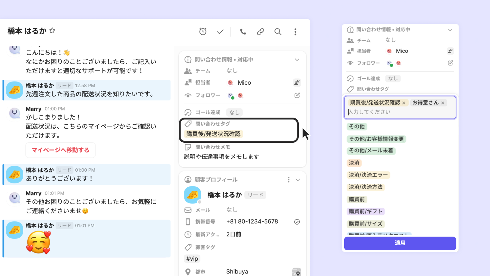 問い合わせタグの具体的な運用方法についてはこちらをご覧ください! (→問い合わせタグの運用方法を見る)