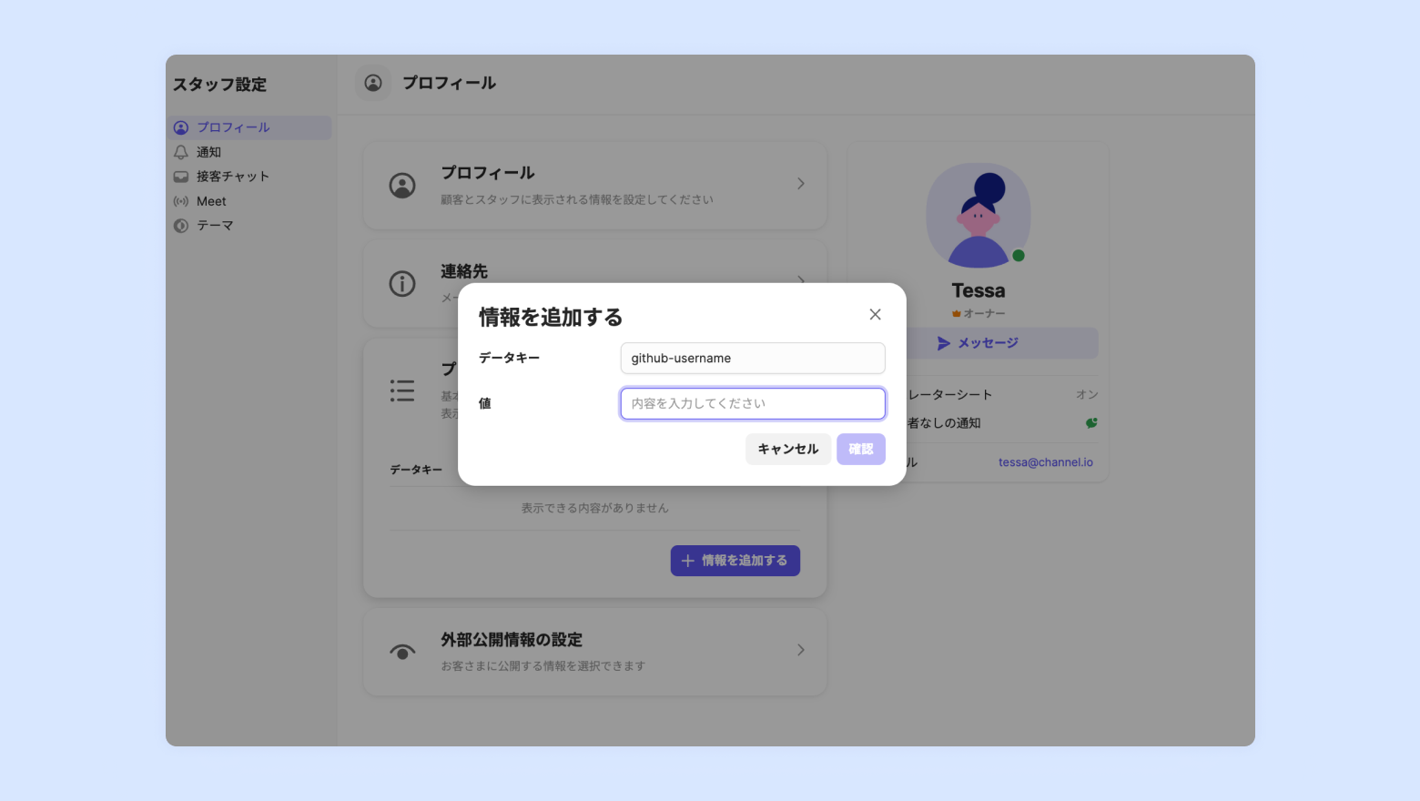 GitHubで利用するユーザー名を基盤にチャネルトークで利用するチームメンバー名をタグするため、チームメンバーのプロフィールにGitHubのユーザー名を登録する必要があります。github-usernameをキーに登録し、GitHubのユーザー名を入力します。