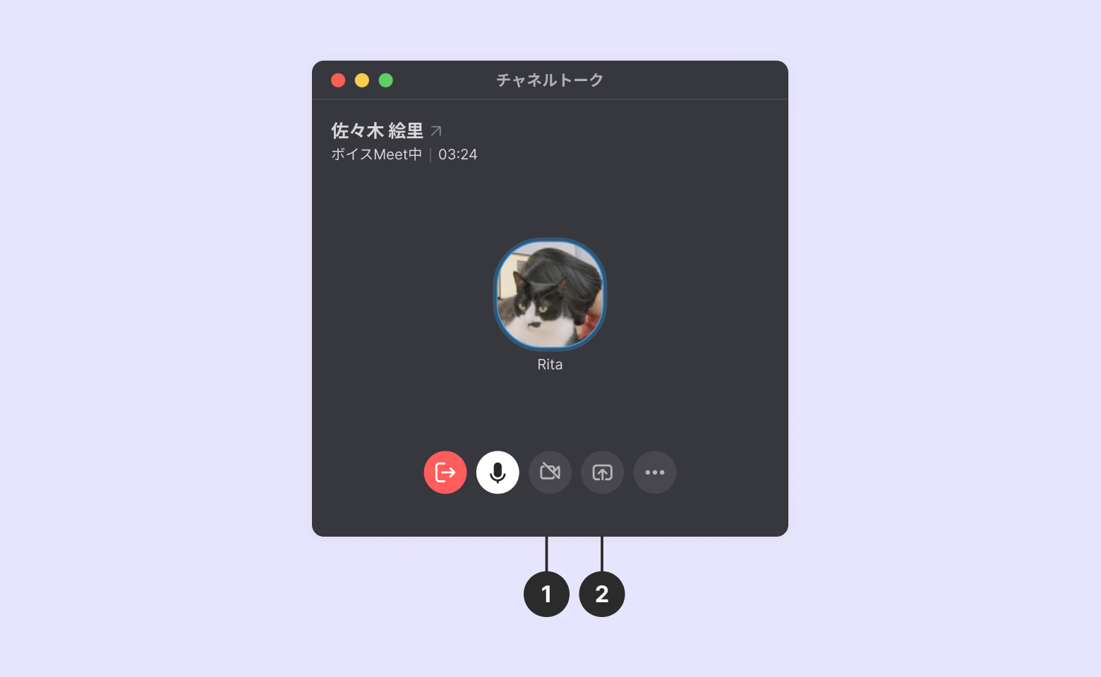 • 方法:[チャネル設定] - [Meet] - [ボイス・ビデオMeet]