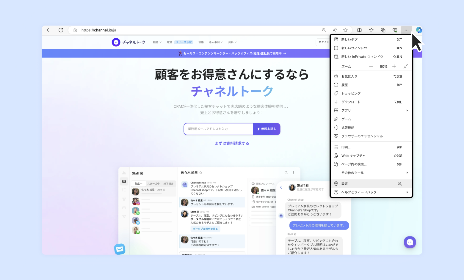• 担当者のついている接客チャットでボイスMeetとビデオMeetでき、引き続き同じチャットでやり取りを続けられます。