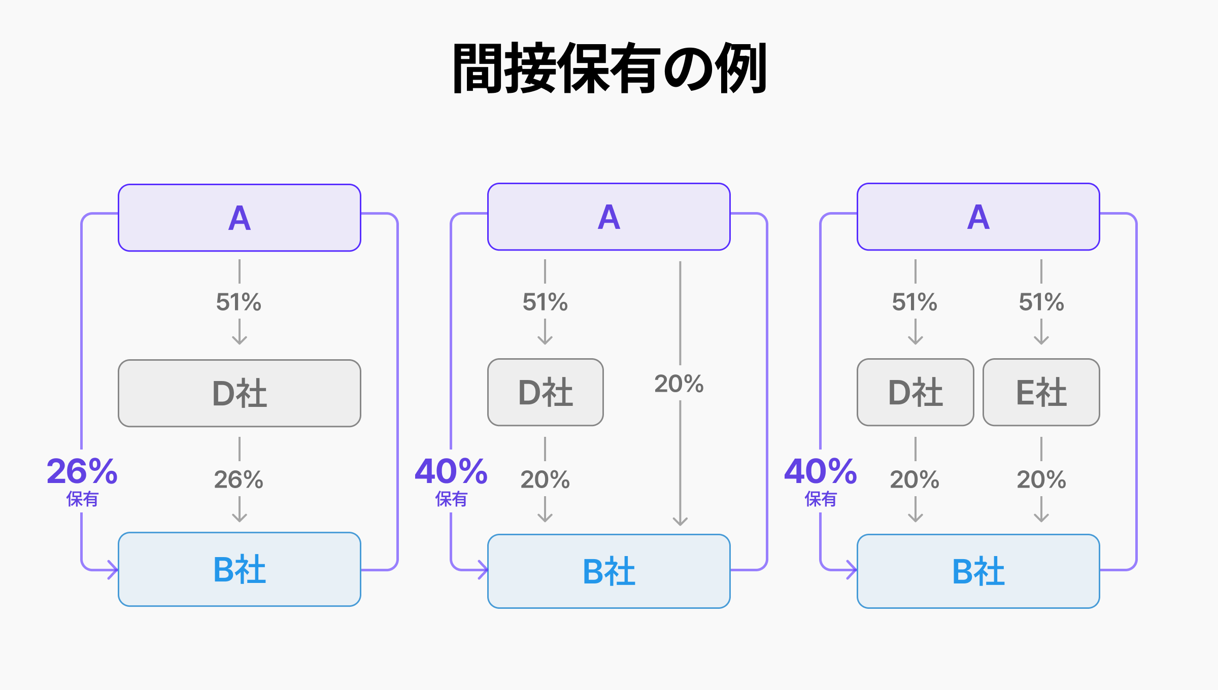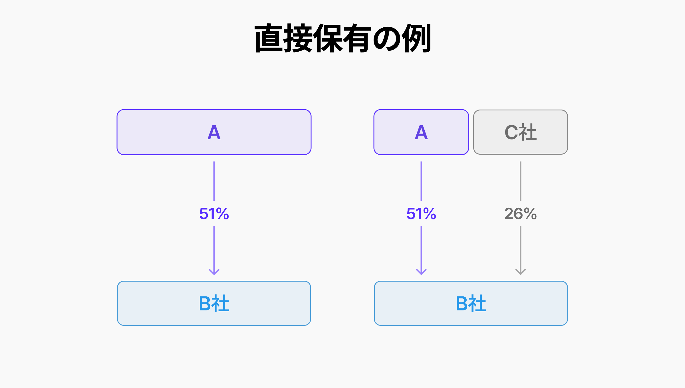 議決権の保有状況の算出は、直接保有分と間接保有分を合算します。