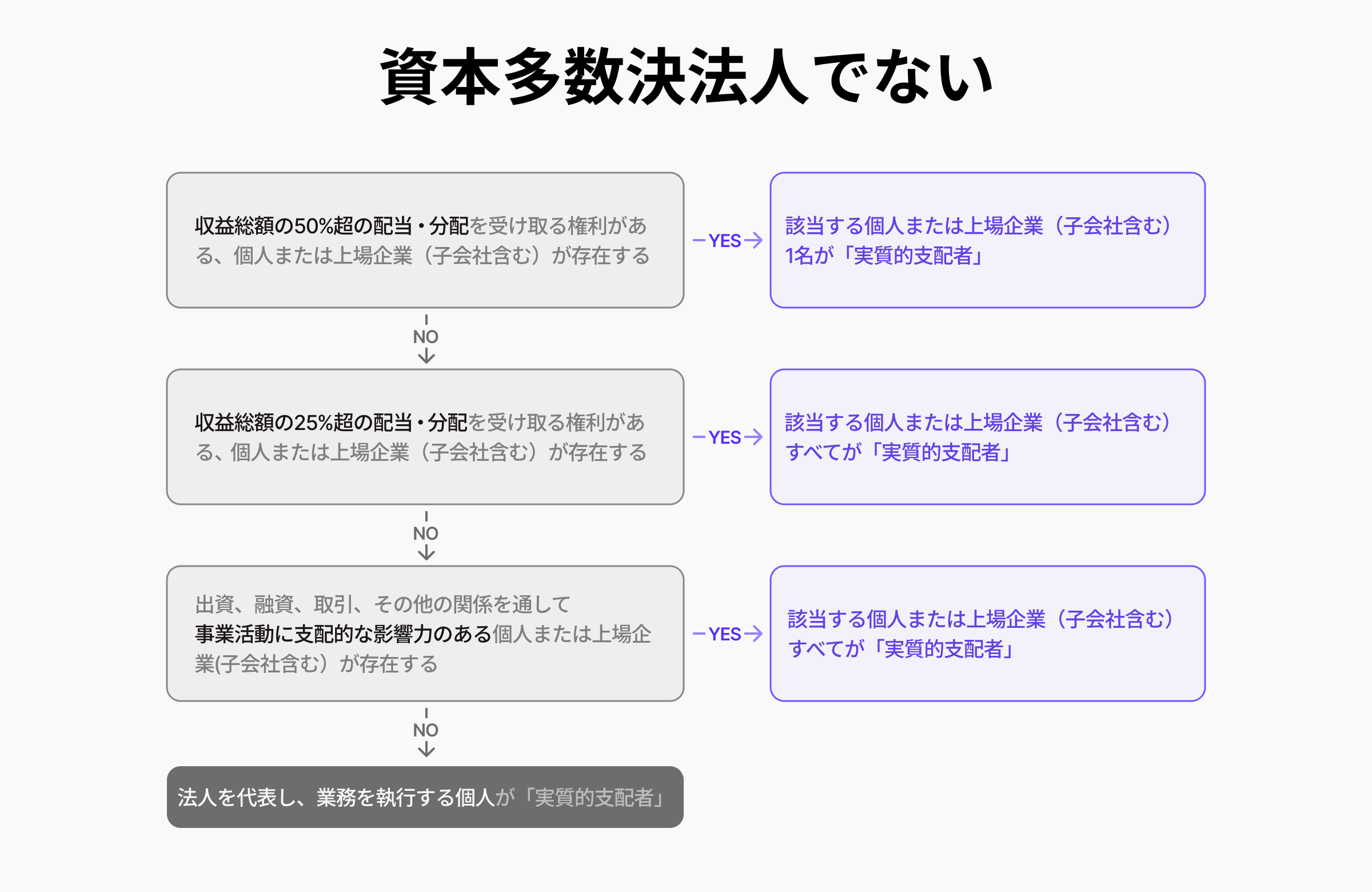 実質的支配者(Beneficial Owner)とは、「その法人の事業活動を実質的に支配する権限を有する個人(自然人)」を指します。犯罪収益移転防止法第4条に則り、電話番号を提供する法人の透明性を確認するために、実質的支配者の申告が義務付けられています。