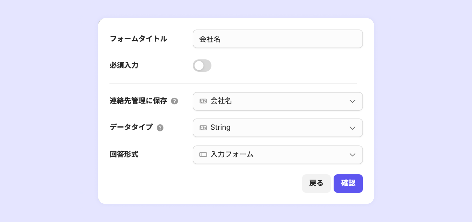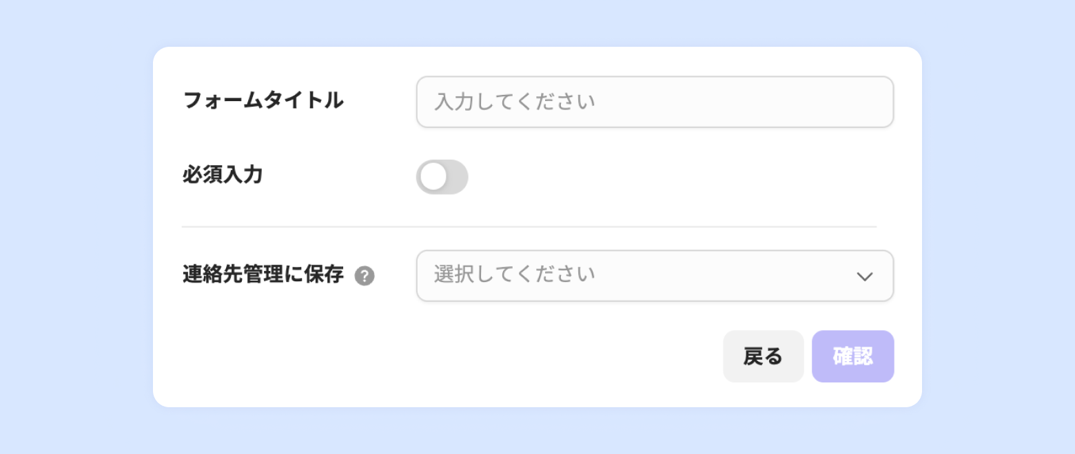 フォームタイトル:顧客に表示される質問内容を作成します。